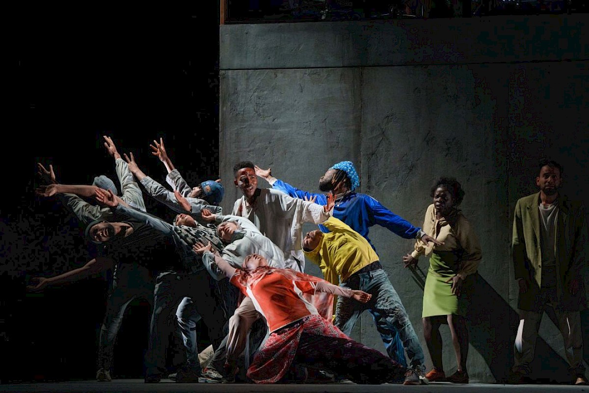 Créé en avril 2024 au KVS et joué à la Monnaie en ce début de saison, l’opéra contemporain Ali raconte l’épopée moderne d’un enfant de Somalie qui doit partir de chez lui pour échapper à Al-Chabab, un groupe intégriste. Un livret captivant écrit en français, somali et arabe sur une musique hybride, rythmée par des chorégraphies envoûtantes.