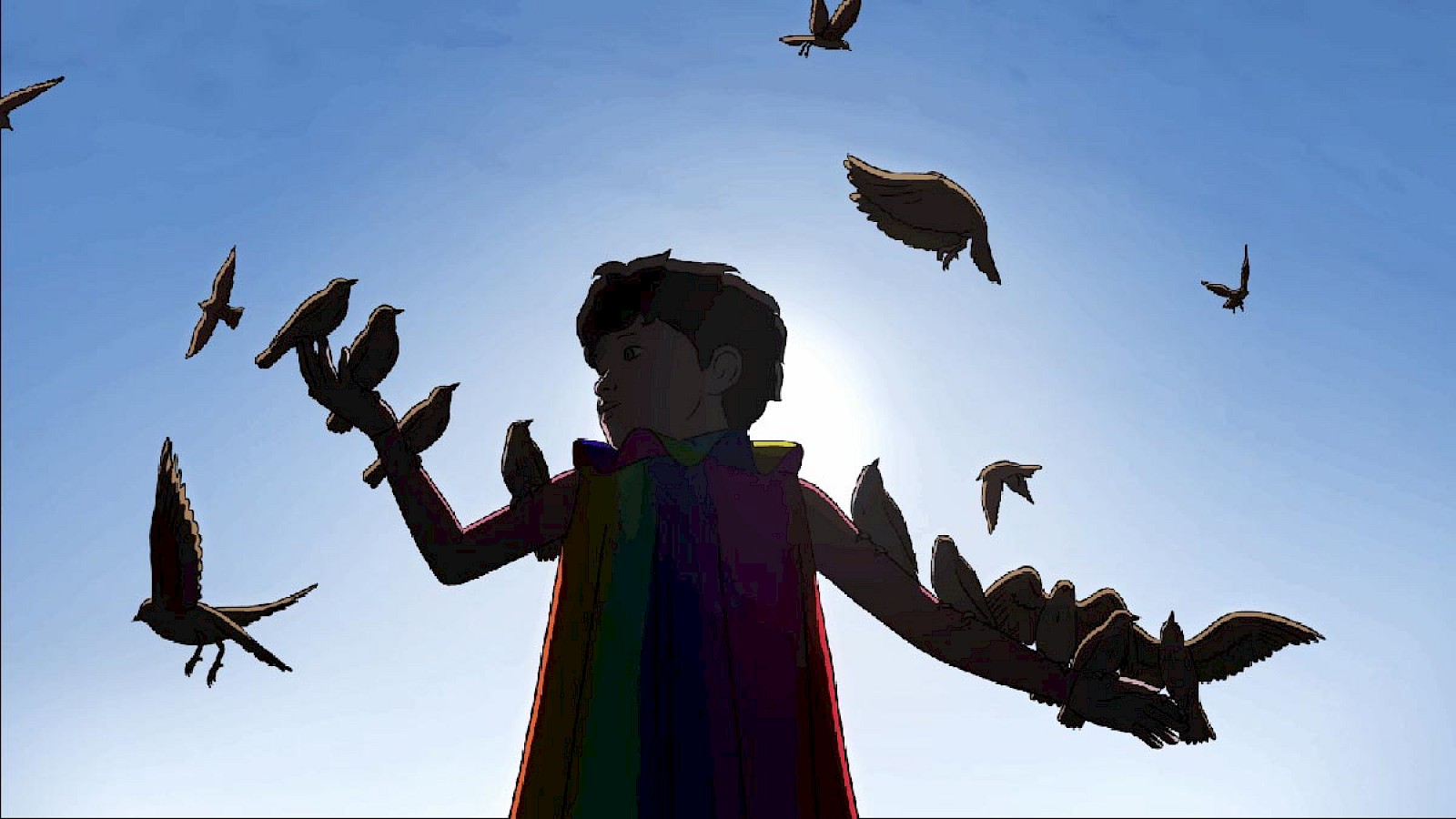 Arco est un long-métrage d’animation où l’on suit l’aventure d’un petit garçon de dix ans qui meurt d’envie de découvrir un monde différent du sien. Au début, on ne comprend pas bien quand exactement se passe l’histoire, mais le film se situe manifestement dans le futur. Arco vit avec ses parents et sa grande sœur, dans un univers où certains peuvent voler et partir en expédition grâce à une combinaison arc-en-ciel. Sa grande sœur ayant plus de 12 ans, elle a le droit d’enfiler cette combinaison et de partir voler avec leurs parents tandis que Arco, lui, doit rester à la maison. Voler pour aller où ? Pourquoi les parents et la grande sœur de Arco partent-ils pendant une journée entière en le laissant seul ? Crevant de curiosité et d’impatience, Arco finit par désobéir. Une nuit, il enfile la combinaison de sa sœur et s’empare du joyau vert qui lui permet de voler — un objet central, presque mystérieux, et dont l’apparence rappelle étrangement le losange vert des Sims. Mais l’expérience tourne mal. Arco perd le contrôle et se retrouve projeté dans le temps. Il atterrit en 2075, à une époque bien plus proche de la nôtre. Dans sa chute, il perd le fameux joyau vert, ce qui le rend incapable de rentrer chez lui. C’est dans une forêt qu’il est découvert par Iris, une petite fille de dix ans. Elle va l’aider à trouver un moyen de retourner dans son monde, malgré leurs différences et l’écart entre leurs réalités. C’est à partir de cette rencontre que le film déploie son récit : une aventure à hauteur d’enfant, entre science-fiction et amitié.
