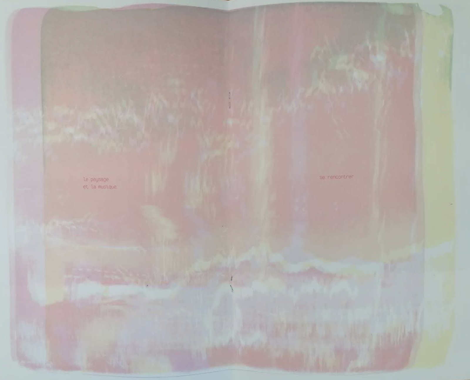 L’ouvrage mêle la poésie de Carl Norac, poète national de 2020 à 2022, originaire de Mons, et les lithogravures d’Eléonore Scardoni, artiste basée à Bruxelles. Chaque lithogravure est accompagnée d’un court poème évoquant la musique dans la première partie, et le paysage dans la deuxième. Le centre de l’ouvrage est le point où la musique et le paysage se rencontrent, avec ces petits mots « le paysage / la musique / se rencontrer » imprimés sur une double page où se trouve une lithogravure couleur rosé où se dessinent des troncs d’arbres.