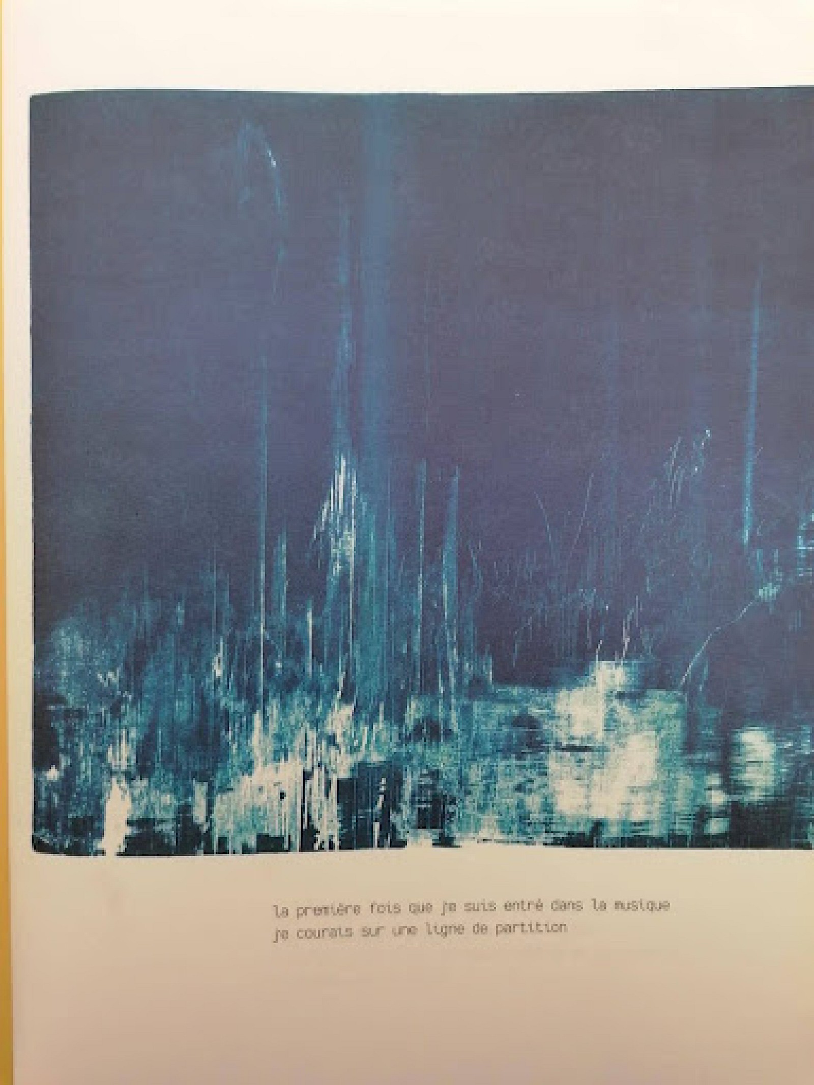 « La troisième fois que je suis entré dans la musique / les notes m’attendaient au coin d’une rue / je marchais plus vite que le chemin »