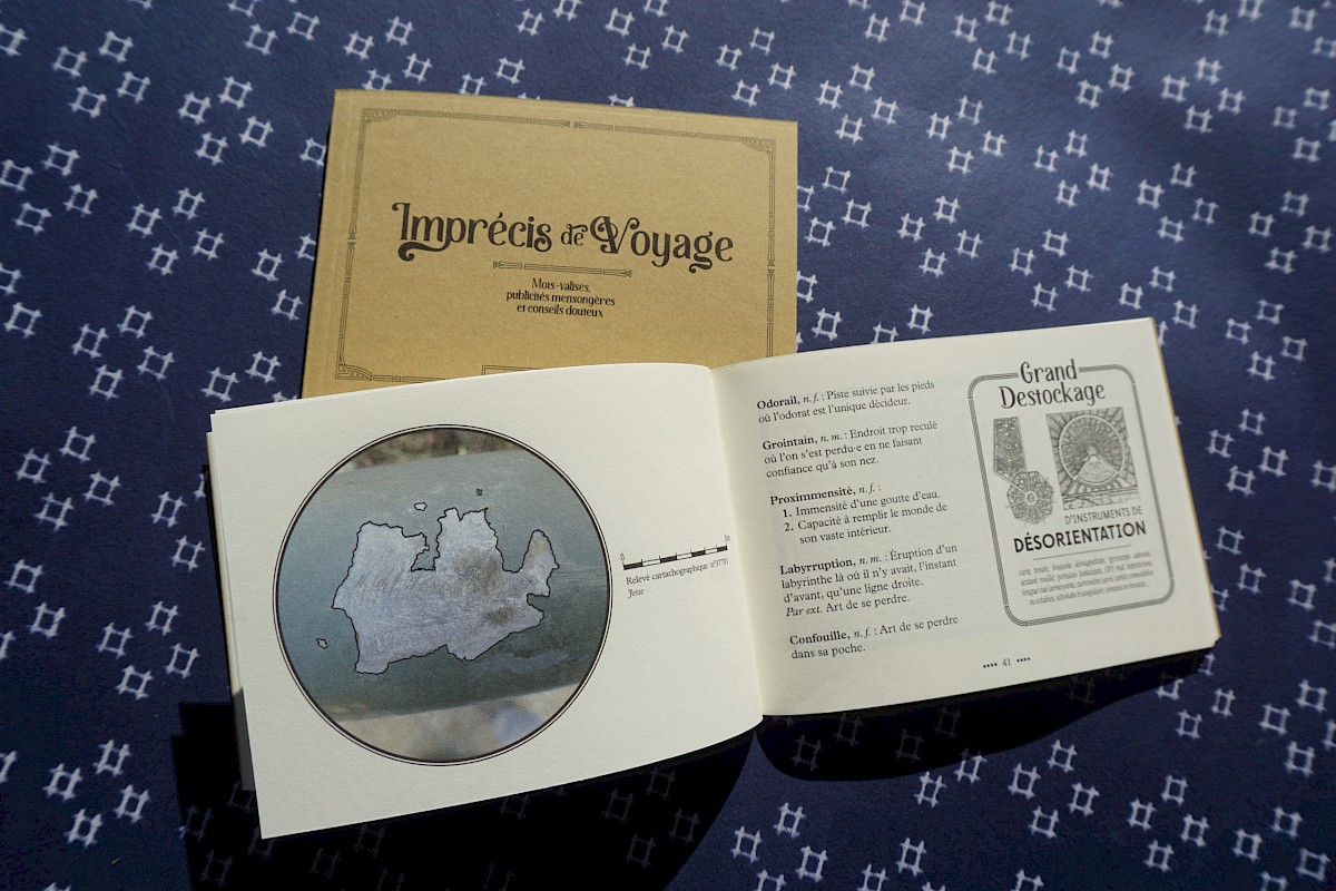 Tout commence de manière très rigoureuse par une préface qui explicite le programme de cet anti-guide qu’est L’Imprécis de voyage : « Ne pas faire d’une promenade dans le parc l’équivalent d’une traversée des steppes mongoles, mais ne pas toujours faire d’une marche dans un parc le chemin le plus court pour aller au snack. » Puis, pour mieux nous désorienter, six parties découpent en tranches lexicales le concept de « voyage ». Dans chacune d’elles, on trouve listés des néologismes, comme dans un dictionnaire, parfois exemplifiés par des photographies, des fausses publicités ou des encarts explicatifs loufoques.