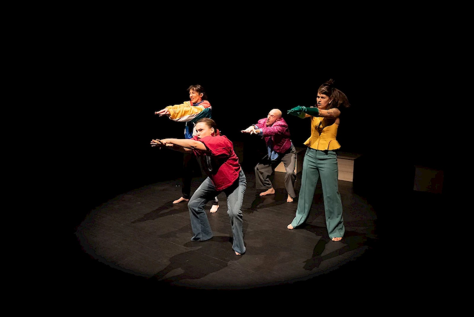 Le rythme est intense mais aussi signifiant. Le spectacle aborde en effet « nos névroses quotidiennes », pour reprendre les termes du Théâtre de la Toison d’or, « les affres de notre époque : charge mentale, egos surboostés et passions sous calmants ». Et les idées crépitent : les personnages sont acharnés, les chorées sont euphoriques, le décor sobre accueille une énergie exaltante.