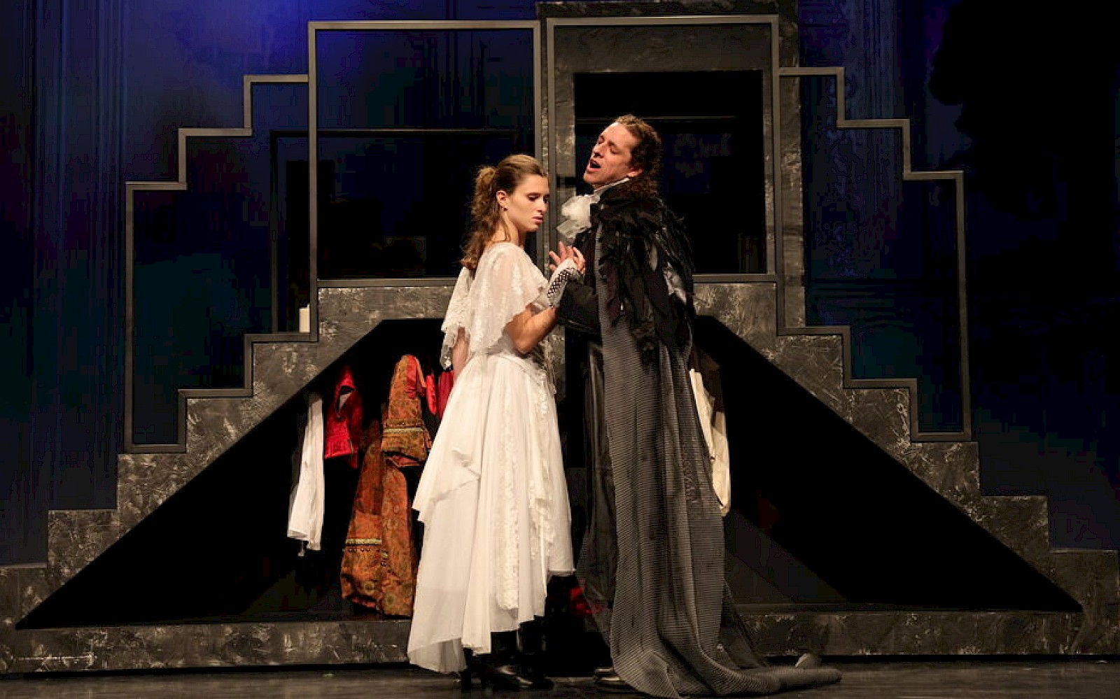 Un peu de voyage : au revoir Bruxelles, au revoir le Théâtre Royal du Parc, nous voilà transportés dans l’Opéra Garnier, à Paris. Une pièce pleine de promesses, un spectacle hybride. Sous la mise en scène de Daphné d’Heur et les lumières de Philippe Catalano, Cyril Collet et Romina Palmeri donnent chair au Fantôme et à Christine – sa muse qui chante la vie. Des escaliers noirs pivotants, des égouts mystérieux, et un ballet de jeunes danseuses entre ombre et flamme, « la Bohème » se teinte alors de gothique. Vêtu de nuit, le Fantôme surgit de la pénombre. Entre les candélabres, il dévoile son visage brûlé. Ce n’est finalement qu’un homme blessé, un passionné tourmenté. Nous tremblions d’émotion devant la violence de son désir pour la cantatrice et la douleur de son abandon. Cet opéra-théâtre moderne te tirait un instant hors de ta propre tristesse en montrant la beauté qui peut naître de la fêlure. Pour apaiser ce drame poétique, la pièce se termine sur Lakmé, « Duo des fleurs ». Mémorable. Pièce après pièce, ton âme se répare. Et cela prend du temps. Mais souviens-toi de ce que disait un philosophe pour clôturer sa plus grande œuvre : « Tout ce qui est beau est difficile autant que rare. »