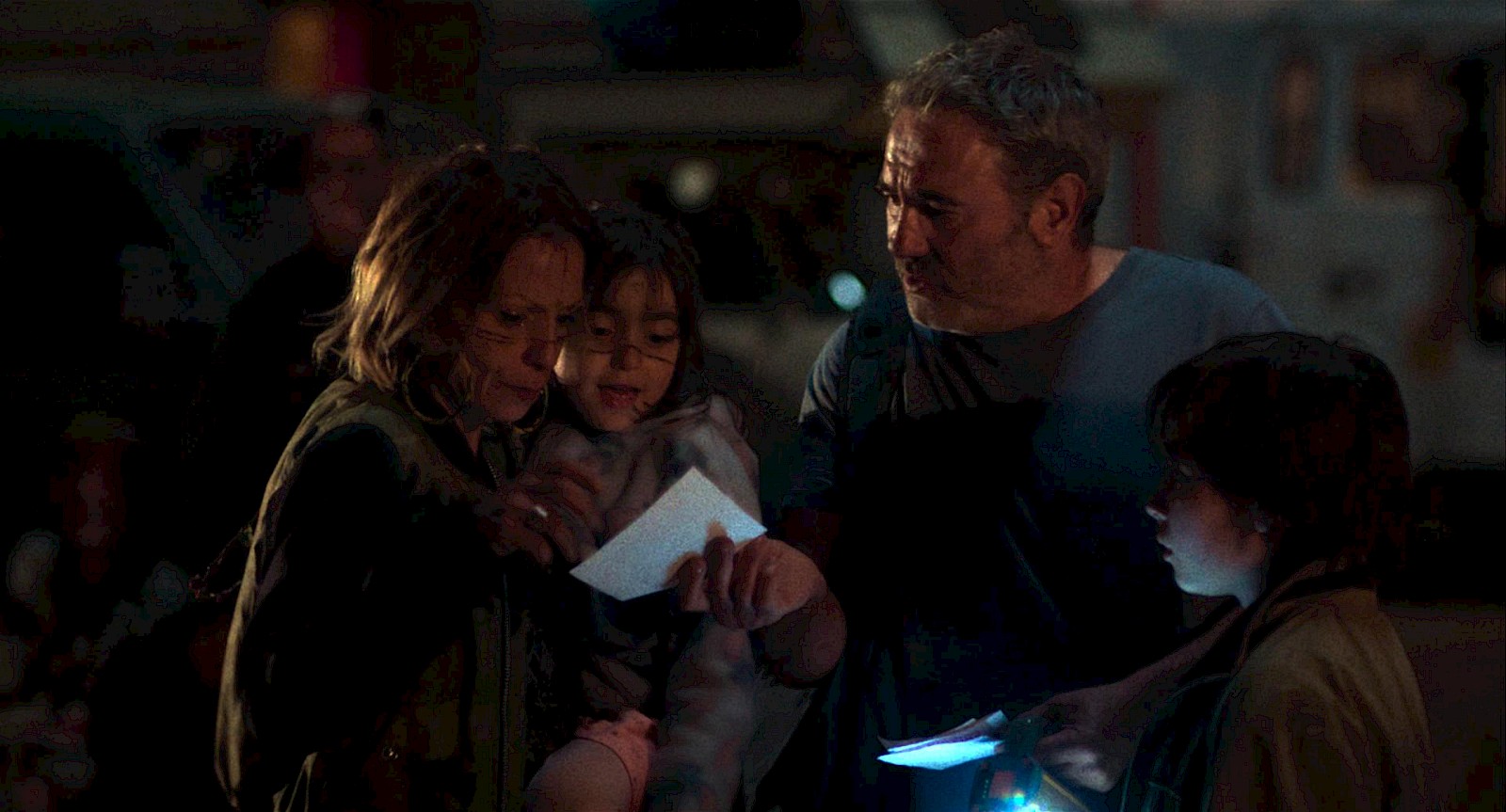 De très larges plans frontaux, statiques, de falaises bronzées : le tableau est brut, sec ; sur des kilomètres, le sable, la roche et le soleil dominent. Dans ces décors isolés du Sud marocain se forment des rassemblements, free parties au milieu du désert, avec pour seule forme les caissons, les enceintes et les participant·es. Dans l’ivresse de la foule, on rencontre Luis (Sergi López) et son fils Estéban (Bruno Núñez) à la recherche de l’aînée, Mar, adepte de ces fêtes clandestines et dont la famille n’a plus de nouvelles depuis des mois. Les deux brisent enfin l’étrange silence de la cohorte que la musique, retentissante pourtant, ne rendait que plus manifeste ; dans une suite de plans en caméra portée vacillants, ils s’introduisent dans la masse de danseur·euses, à l’affût du visage familier de Mar, ou de quelqu’un·e qui en aurait le souvenir. Ils réveillent les corps soumis aux amplis, comme autocentrés, aveuglés par le bruit et rythmés par sa force ambiante. Le duo tend et re-tend le petit papier, interrogent partout : « Vous la connaissez? » Bientôt émerge la perspective d’une autre fête, à laquelle la disparue pourrait se rendre, et notre duo, étranger à ce monde régit par l’excès musical et l’austérité de la nature, s’embarque sur ses routes arides dans leur van citadin, guidé par un groupe de bohémien·es à bord de leurs poids lourds aménagés.