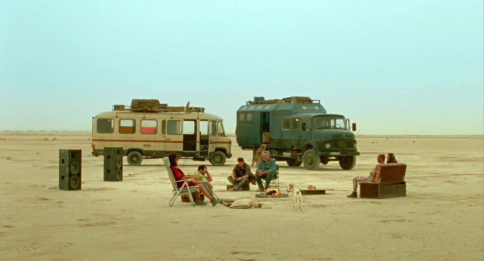 Sirāt est l'élaboration d’une mosaïque chargée, mais décemment orchestrée. Sans trop négliger l’un ou l’autre de ses thèmes, le film est une réussite du point de vue de sa pluralité : discussion philosophique et tonalité spirituelle, couplées au divertissement d’une intrigue classique de road movie, des effets de surprise, et des sensations fortes véhiculées par le registre dramatique et, surtout, par le son. La BO de Sirāt enjambe la diégèse8 dépassant le (non-)cadre de la fête sauvage pour voyager avec le·la spectateur·ice. Elle le crispe, le choque, vrombit avec les moteurs des camions et concourt avec les hasards de la vie et de la mort, l’ineffabilité de la douleur qu’ils provoquent. Le refrain est universel : la peur de la fin, mais aussi une célébration jouissive de se sentir vivre, traversé·e par la force du son.