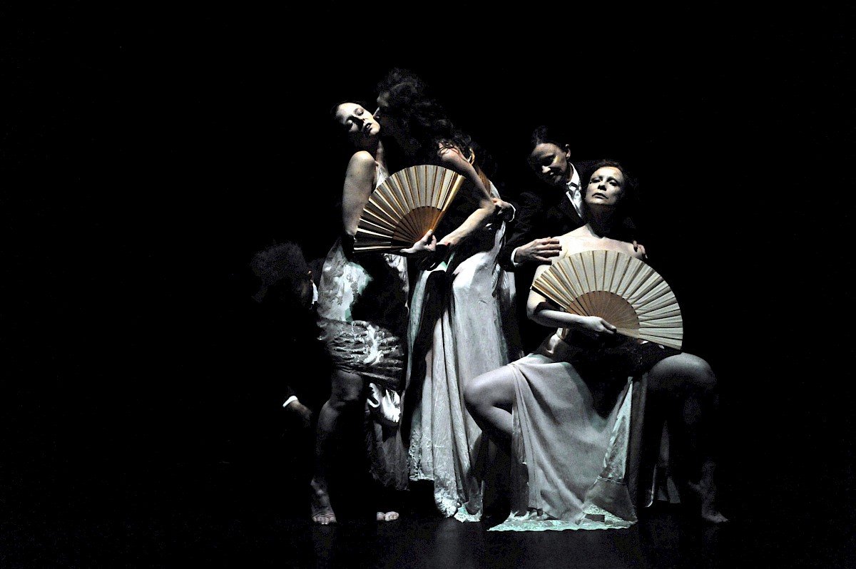 « L’Infante » de Velasquez s’invite aussi en poupée brisée. Elle repart démembrée, comme la plupart des personnages dont les prothèses et les visages de marionnettes finissent souvent détachés du reste de leurs corps. « Les cannibales contemplant les restes humains » n’est jamais très loin de cet étrange spectacle. Mais c’est peut-être la figure de la « Maja Vestida » qui hante le plus durablement la scène. Apparition spectrale, robe blanche flottante et chant ancien, elle est la source vive de ce songe invraisemblable. Autour d’elle, des corps s’entassent, se brisent, entrent en transe.