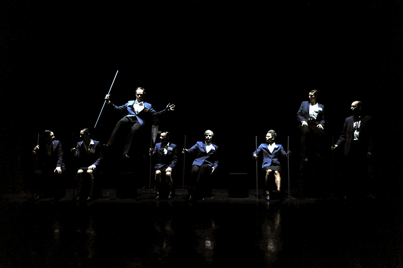 Le spectacle nous fait perdre tout repère dans l’obscurité et la succession des saynètes du répertoire dantesque de Goya. Ces scènes de folie qui rivalisent avec les plus noirs cauchemars sont accompagnées de voix décérébrées et de râles d’agonie. Par moment, les gardiens victimes de ce sombre rituel s’agitent de façon saccadée et grotesque, comme entrainés par de vieux fandangos espagnols. Des sons gutturaux, des cris, des borborygmes, des paroles confuses écrasent le silence. Et parfois un chant éthéré et harmonieux vient trouer ce macabre registre sonore, une berceuse a capella qui s’insinue au plus profond de l’âme.