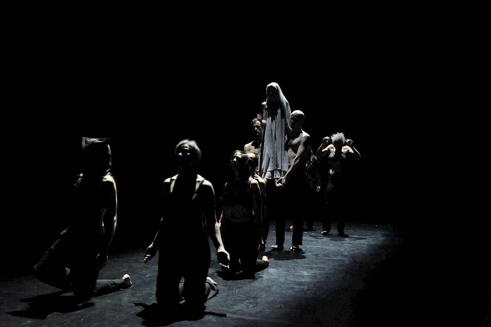 Ici, les ténèbres brillent et le malaise fascine. L’éclairage est réduit au strict minimum. C’est à travers cette pénombre qu’est esquissée l’Espagne du XIXe siècle, secouée de conflits internes et de superstitions. La Révolution française et l’ombre du bonapartisme frappent à la porte. On assiste aux exécutions stylisées des insurgés espagnols. Des danseurs s’effondrent sous des coups de feu invisibles mais sonores. Deux partisans endimanchés déboulent alors, l’écharpe républicaine au corps, beuglant un chant patriotique et brandissant, au bout d’une pique, une tête qu’on devine aristocratique. Mais les morts se relèvent et les dépouillent de leurs atours pour mieux les jeter à terre. Voilà le genre de scène loufoque que propose The Great He-Goat. Aucune explication, aucun dialogue. Le spectateur est son seul interprète, comme face à une toile.